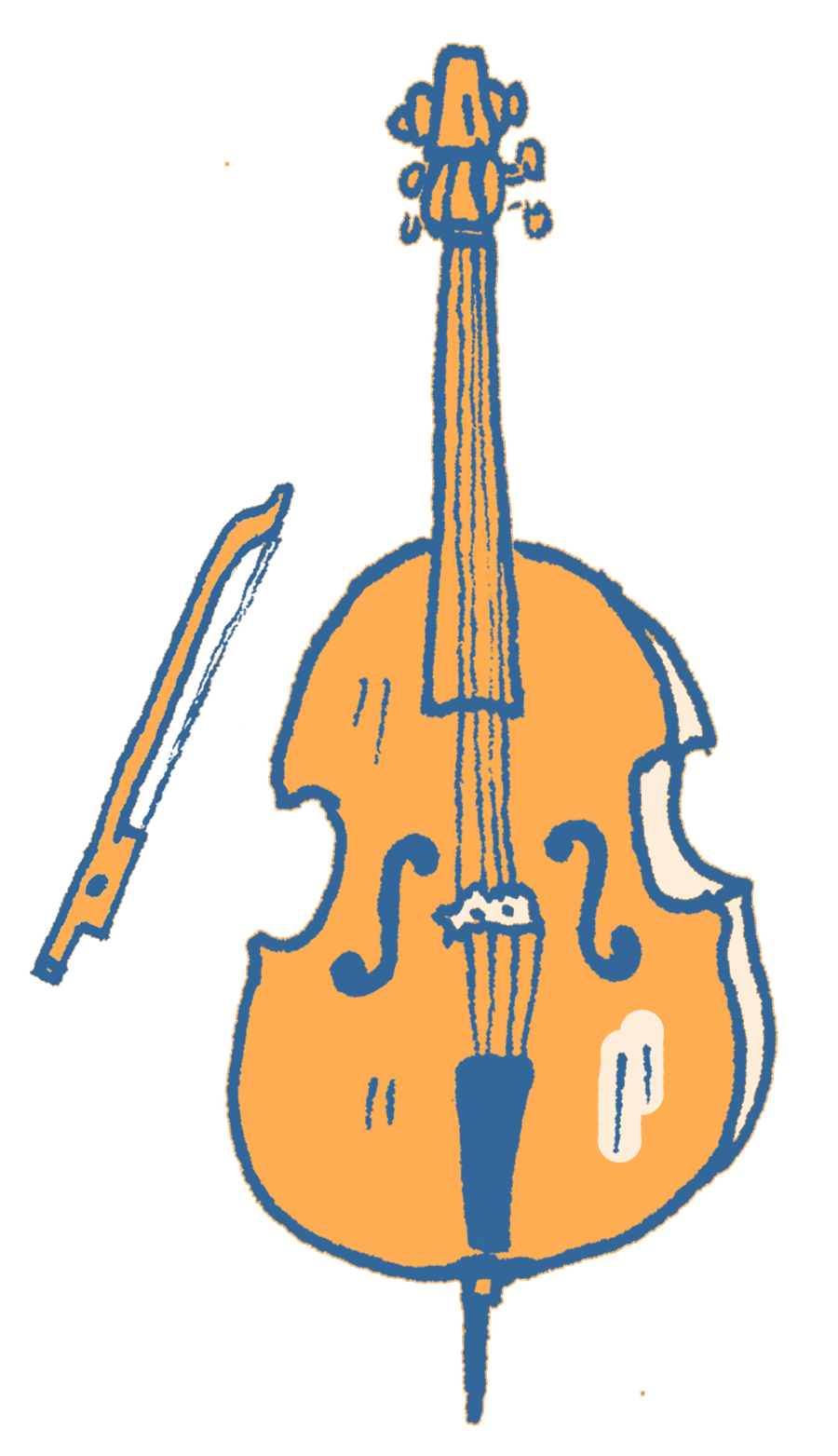 La contrebasse est l’instrument à cordes le plus grave de la famille des violons. Elle apparaît à la fin du XVIème siècle en Italie. Elle suit l’évolution des violons et des violes et fut longtemps considérée comme un instrument de la famille des violes. Encore aujourd’hui ce débat n’est pas clos dans certains milieux. Elle possède quatre cordes à cinq cordes accordées en quarte contrairement aux autres membres de la famille, accordés en quinte. Le nombre de cordes ne s’est stabilisé que dans le courant du XXème siècle ; encore au XIXème siècle, la contrebasse comprenait le plus souvent trois cordes. Les cordes en métal concurrencent à partir des années 1930 les cordes, jusque là, fabriquées en boyau. En particulier dans le jazz, le choix des cordes rélève du choix du musicien d’opter pour un son plus ou moins rond et sonore.